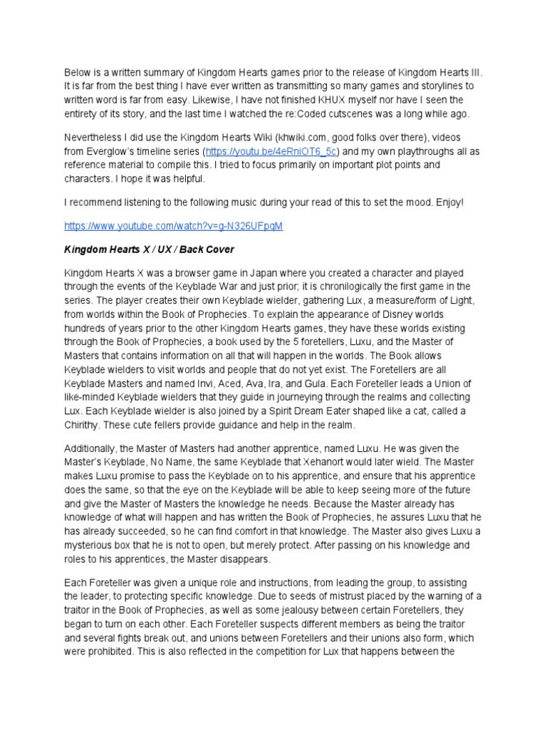 Kingdom Hearts Summary Synopsis Of Chaos Leisure
